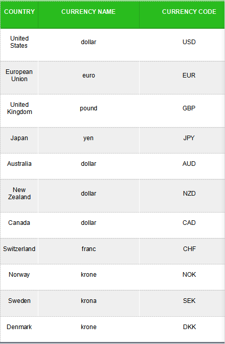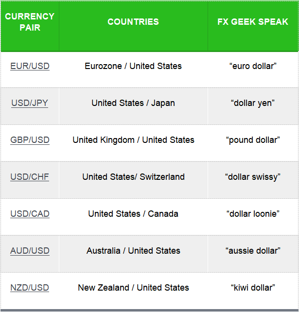 A wannan jerin gaba dayansu suna dauke da U.S. dollar a bangare daya, kuma sune akafi kasuwancinsu.