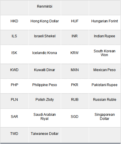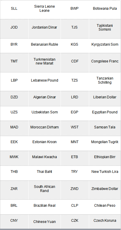 Kasaka aranka cewa wannan jerin kudaden masu biyu basu kai manyan kudade dana ketare ba wajen karbuwa da cinikayya saboda haka kudin hadahadarsu yanada tsada.