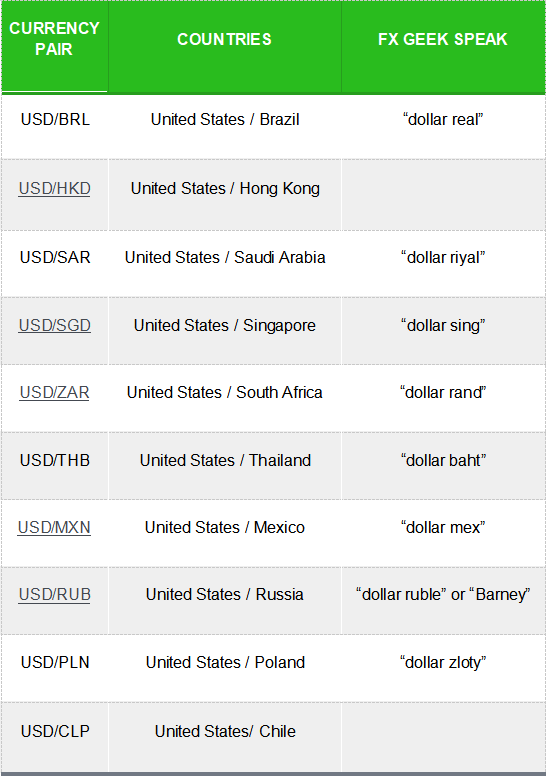 Exotic currency, sukuma wannan kashin sun hada da daya daga cikin manyan kudade da kuma daya daga cikin kudaden kasuwa mai tasowa.