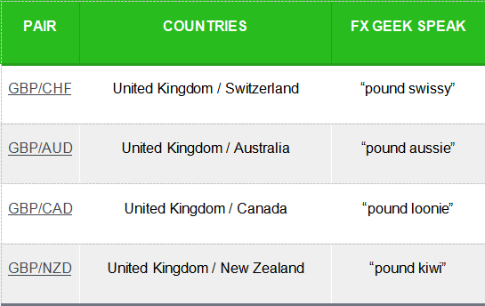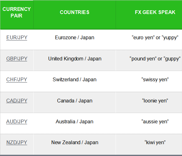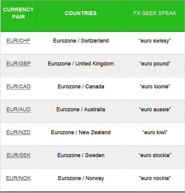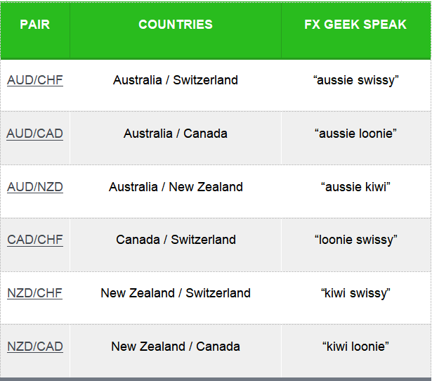 Cross-currency sukuma wannan kashin basa tareda da U.S. dollar. Kashin Crosses din dasuke tare da manyan kudade ana kiransu da suna “minors”.